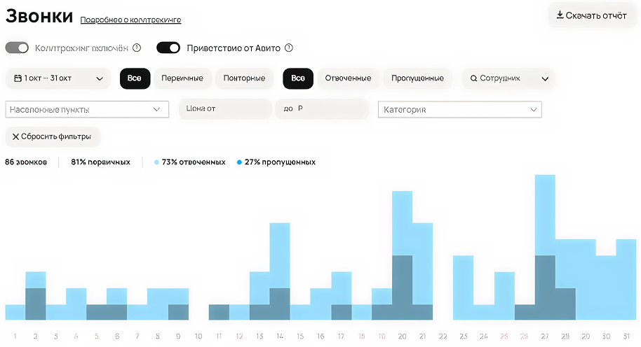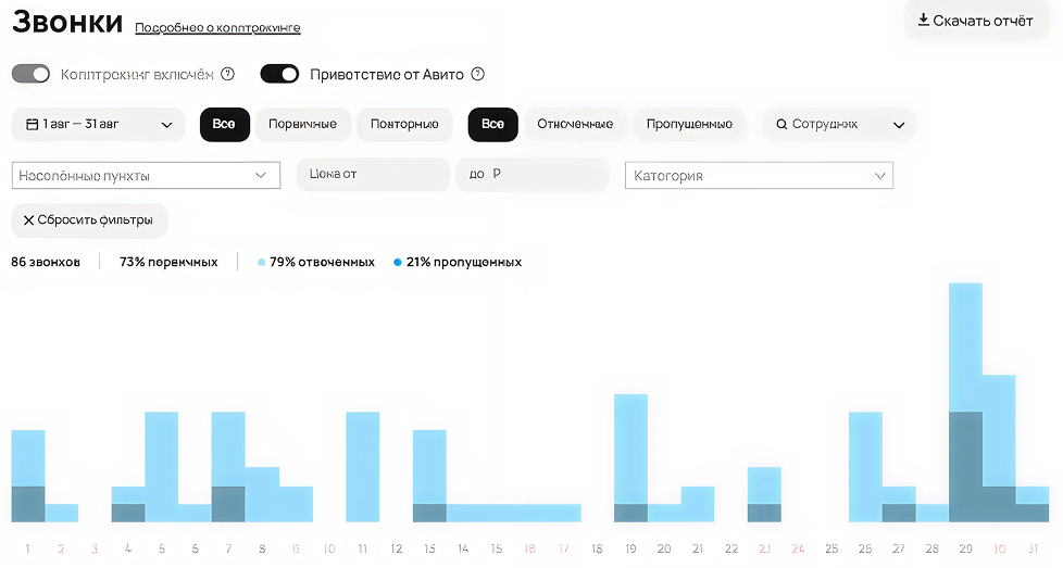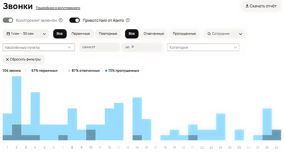 К этому моменту кампания вышла на устойчивый поток обращений: звонки исообщения приходили ежедневно, клиент смог планировать производство илогистику с опорой на заявки из Авито.