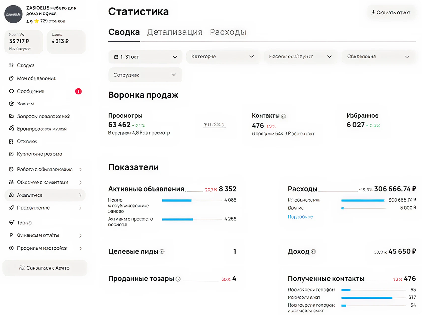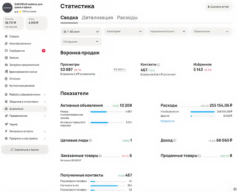 ZASIDELIS продаёт корпусную мебель для дома и офиса, часть ассортимента производится на собственной фабрике. На Авито уже были активные объявления, но не было единой стратегии: одни позиции почти не получали просмотров, другие не доводили клиентов до заявки, не велся регулярный анализ по сотрудникам и категориям.