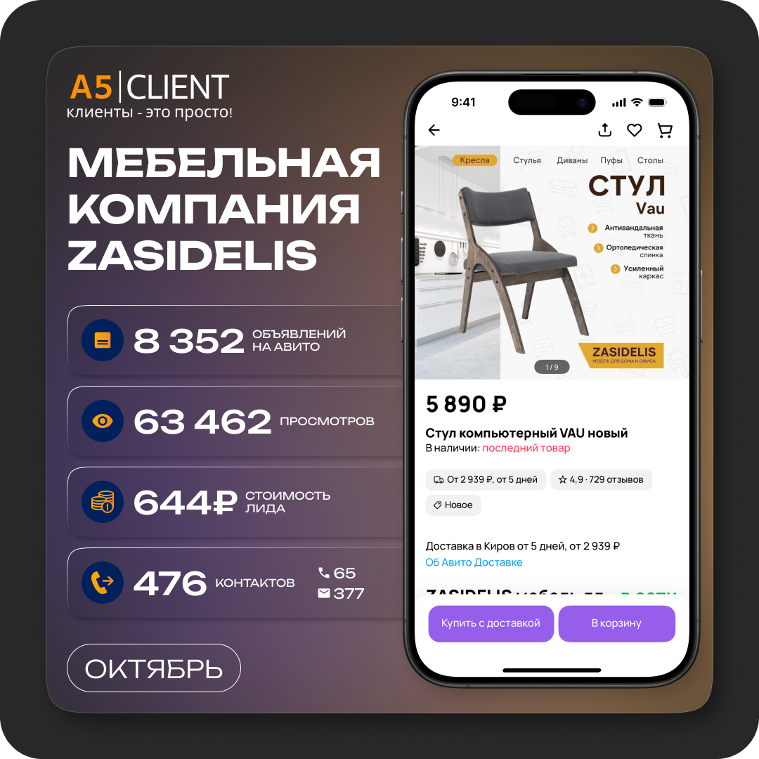 Продвижение мебели на Авито: кейс ZASIDELIS