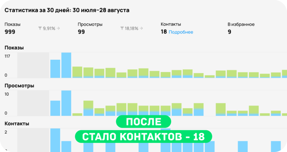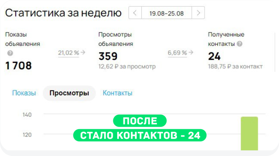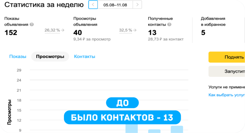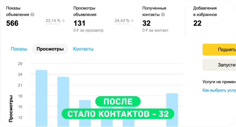 В любом из выбранных вариантов вы точно сможете улучшить свой результат работы на Авито за счет роста количества просмотров и заявок